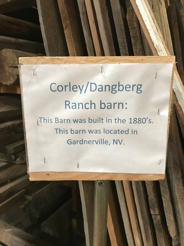 I get my barn wood from a little side of the road shop in Gardnerville, NV. They actually tear down local barns that people don’t want anymore and resell the wood. Up at front desk they have a binder full of pictures of the barns, along with the location and estimated year the barn was built. Throughout the shop are signs set up dividing the wood by the barn it is from. One of my favorite things about this store is the two giant rolling doors they have with hundreds of brands burned into it. Just shows how long this little shop has been around. (I’ll take a picture of it next time I go).